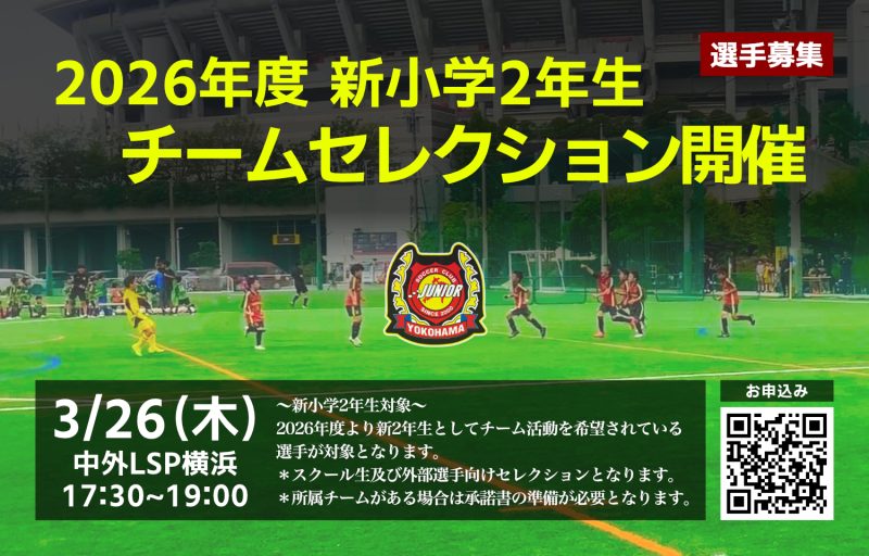 2026年度に向けた新小学2年生チームセレクションを開催いたします。