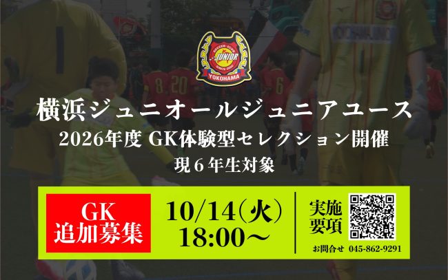 2026年度に向け、現6年生GKを対象とした追加セレクションを開催いたします。